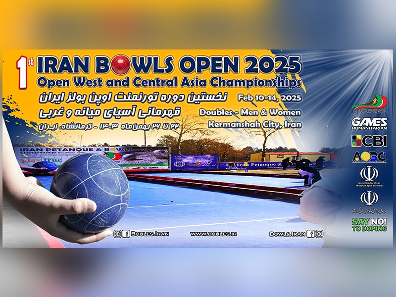 As parts of the official program of the Humanitarian Games, the 1st Iran Bowls Open Championships together with the 1st West and Central Asia Bowls Championships, sanctioned by the CBI, will be hosted by the Iran Petanque and Bowls Association (IPBA) in Kermanshah City during February 10-14, 2025.
