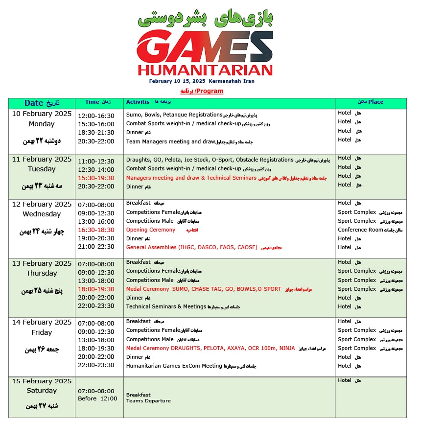 Humanitarian Games 2025 schedule